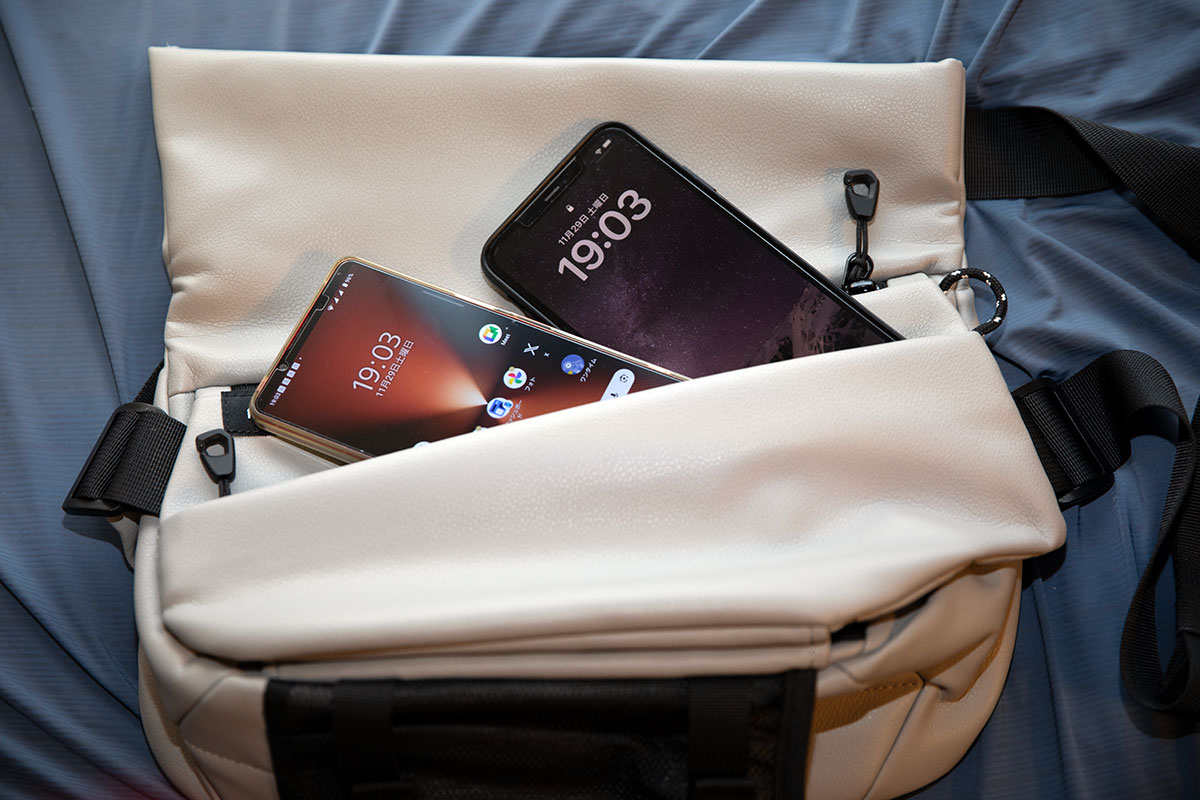 銀行やATMを回る際の通帳ケースは、これまでのサコッシュではパンパンに膨れて、他にスマホなどが入れにくくなっていたのですが、こちらのスリングバッグではマチが広いため分厚い通帳ケースも難なく入り、しかも縦に入れることができるので整理もしやすそうです。