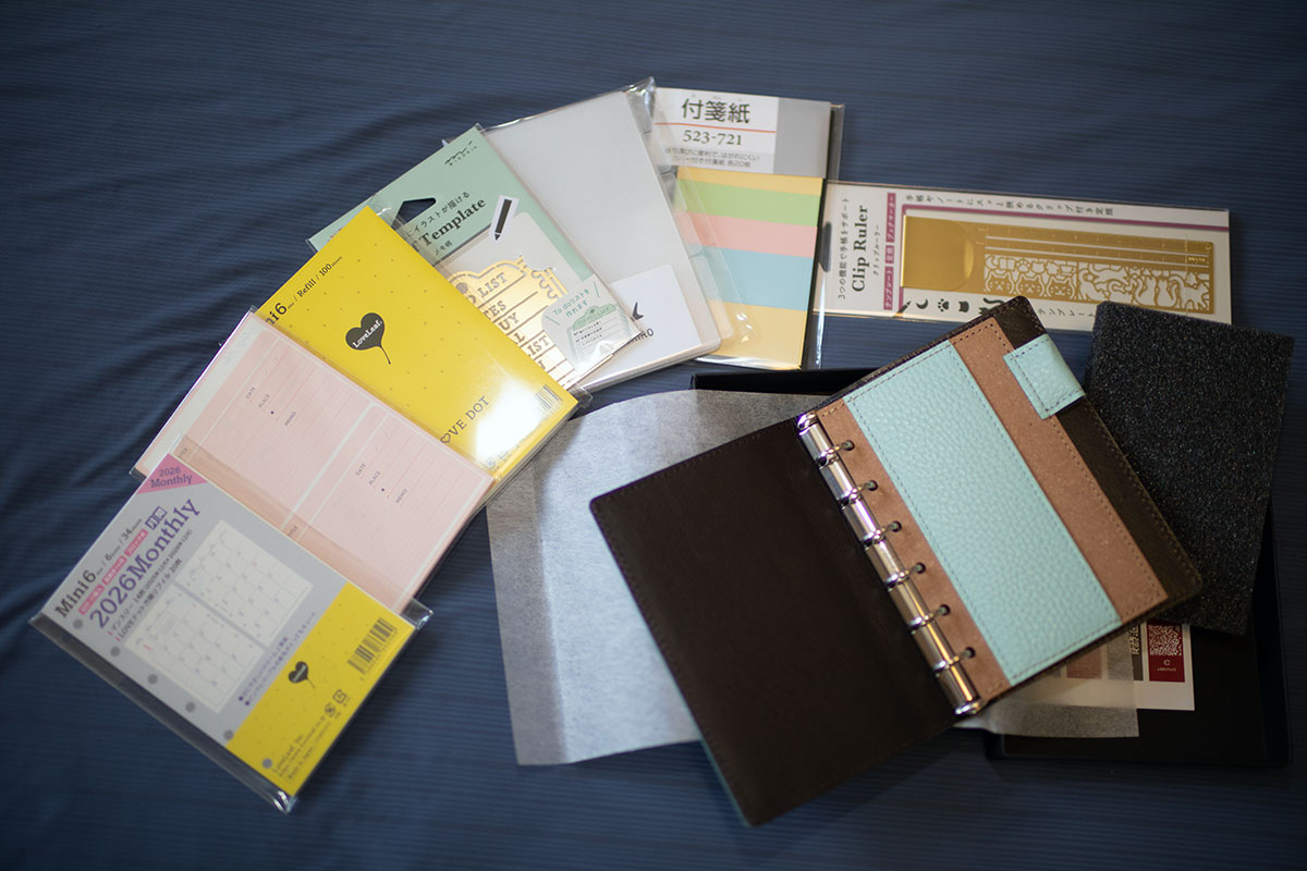その他には、マンスリーブロックやホビーノート、インデックスなどを買いそろえています。以前に使用していたA5やバイブルとはサイズや穴が全く異なりますので、全て新規に購入する必要があります。