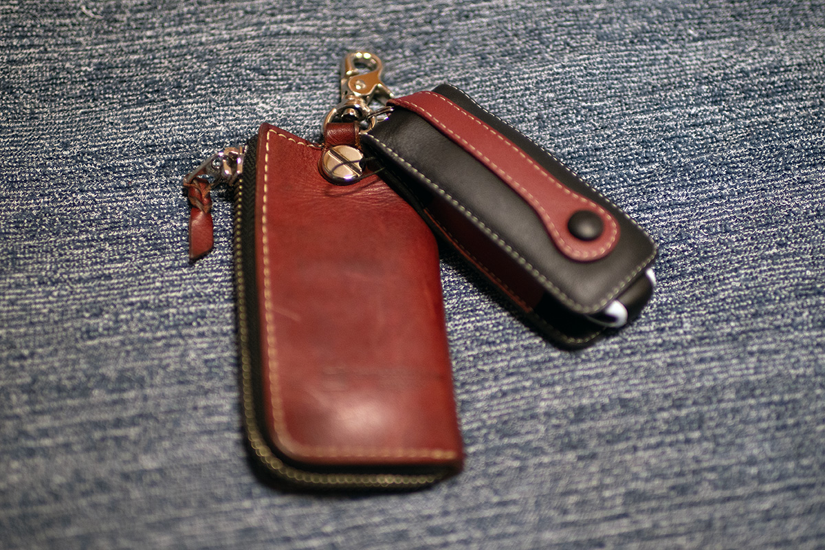 そこで考えたのが、移動はほぼ車ですのでキーホルダーに付けておけば絶対に忘れないということです。電車移動の際にはだいたいスリングバッグですので、ここにはミニ財布を入れておき、キーホルダーには家の鍵も付いていますので外出時には常に持ち歩きます。