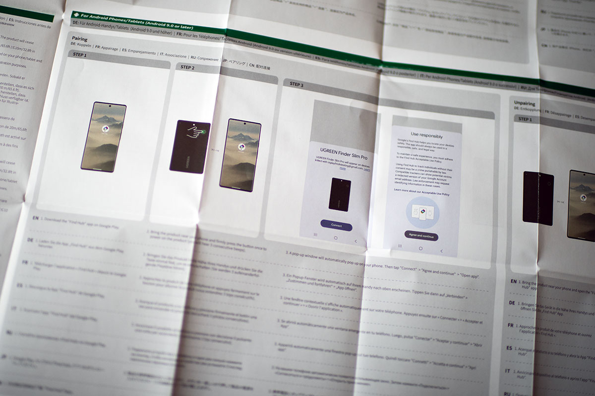 その後、Amazonを見ていたところUGREENの「FineTrack Slim Smart Finder」という充電式の同じ薄さ1.7mmのカード型がありましたが、こちらはappleのみの対応で今回のAndroidでは使用できませんので、使い切りタイプの「FineTrack Slim Pro」が最適解ということになります。