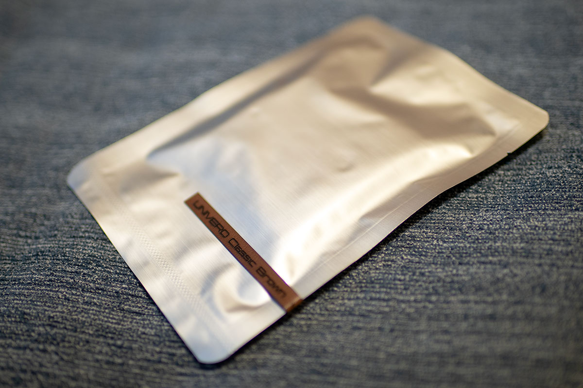 このUNIVEROは、天然タンニンなめしの姫路レザー100%で、新品時はマットで落ち着いた印象となっています。新品の美しさから始まり使い込むほどに光沢が出てくるとのことで、色や艶・手触りが変化していき3~5年以上かけて育てる「エイジング」を楽しむことができます。